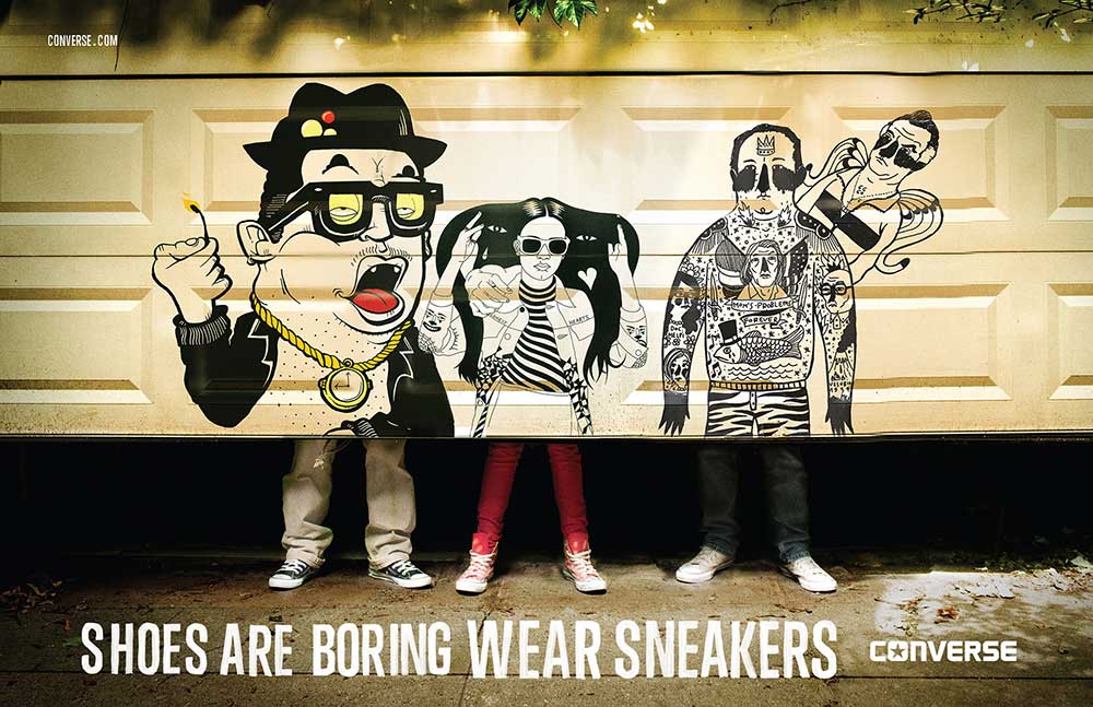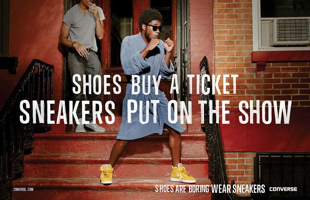 Converse wanted to a occupy a unique space in the footwear/fashion industry, so we developed a unique strategy. We took the word “sneaker,” a word long associated with Converse but relatively devoid of meaning, and filled it with rebelliousness, attitude, color, and acid humor.